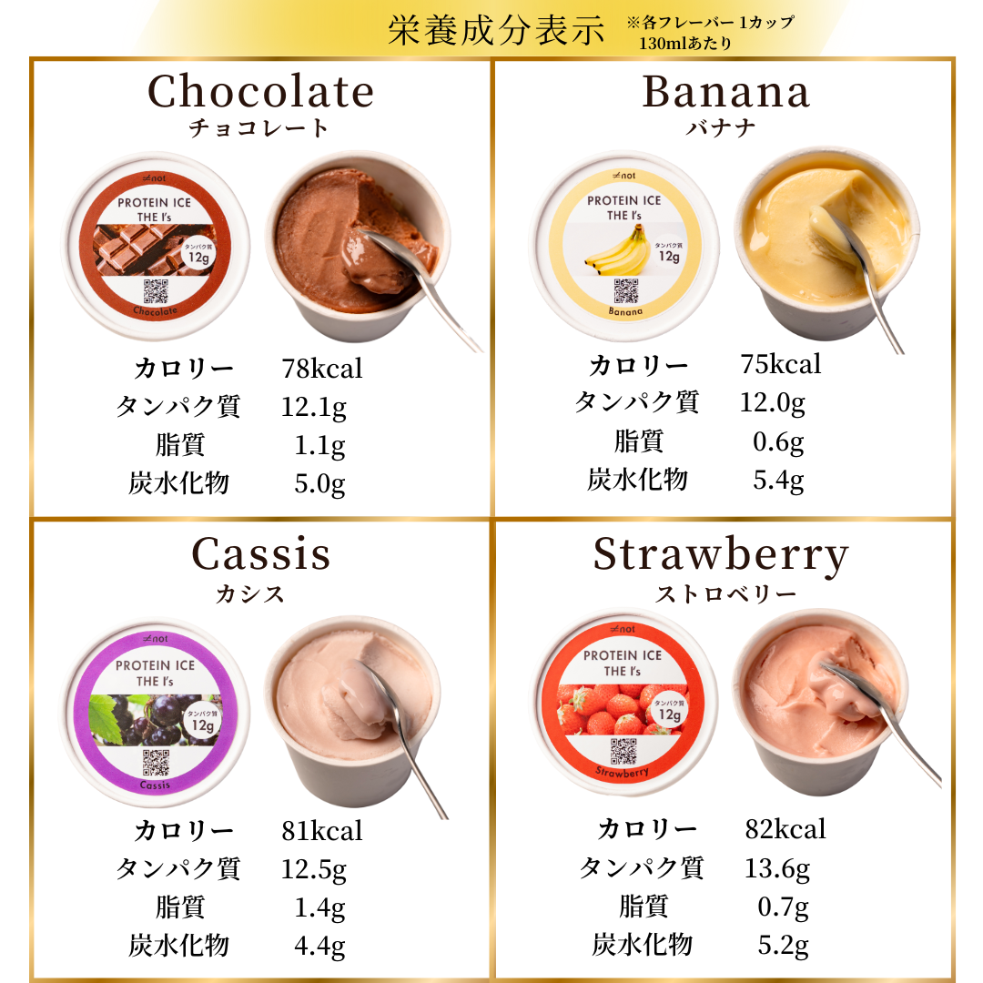 1 プロテインアイス THE I's バラエティセット 12個 / ストロベリー、カシス、チョコレート、バナナ 各3個 合計12個入り(1カップあたり約378円) ※熨斗貼り付け対応可