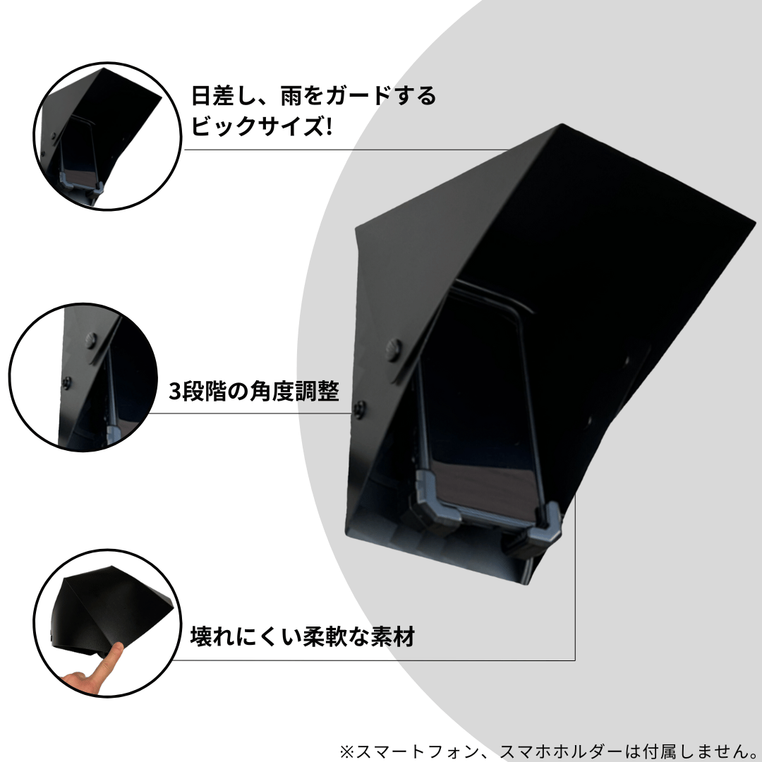 雨や日差しの向きはいつも同じとは限りませんがスマホホルダーカバーがあれば大丈夫。3段階の角度調整機能であらゆる天候に対応可能です。