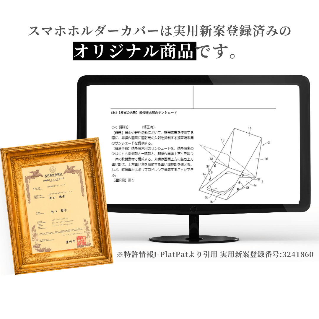 さらに実用新案権も取得し、スマホホルダーカバーの技術は特許庁のお墨付きを得ています。